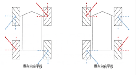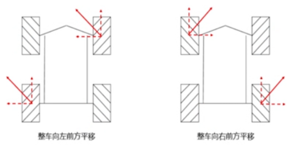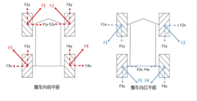 - 向左运动时,需要左前和右后轮向后转动,左后和右前轮向前转动