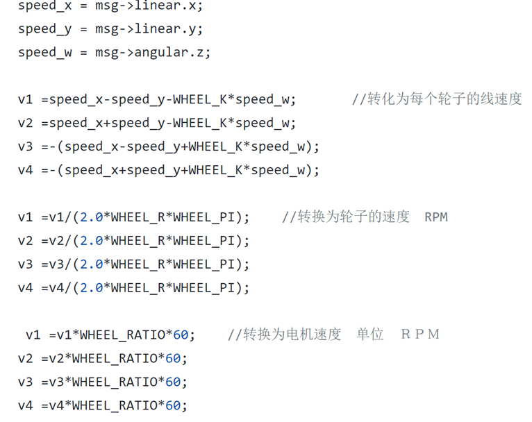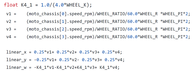 到这我们求出了车身速度对应到每个麦轮上的速度
