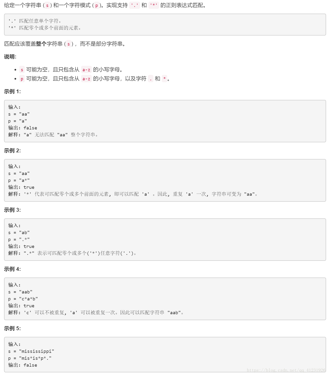 以上就是尊敬路灯最近收集整理的关于LeetCode010——正则表达式匹配的全部内容,更多相关LeetCode010——正则表达式匹配内容请搜索靠谱客的其他文章。