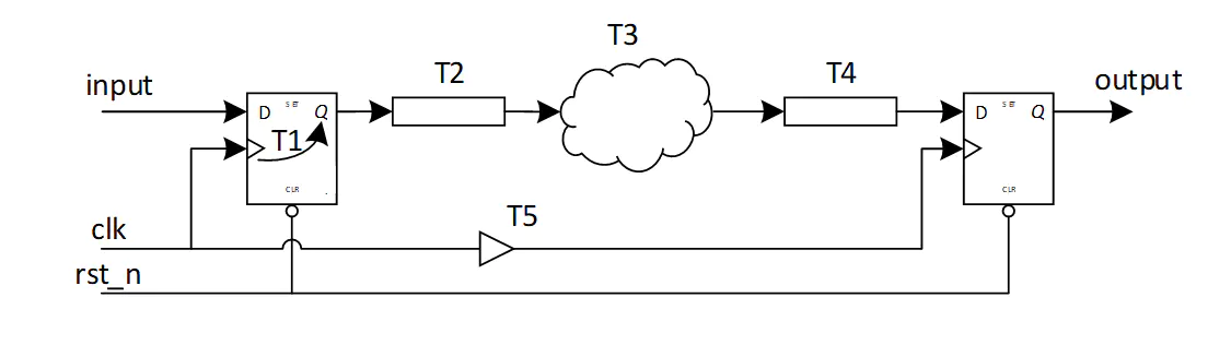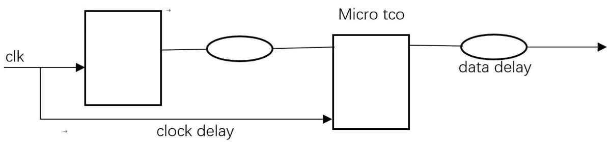 Clock-to-Output Delay(tco) 这个时间指的是当时钟有效沿变化后,将数据推倒同步时序路径的输出端的最小时间间隔。时间路径为触发器到输出端。