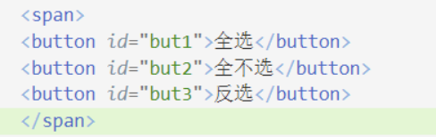 9、设置三个按钮用span标签(行内标签)包裹起来,设置id。