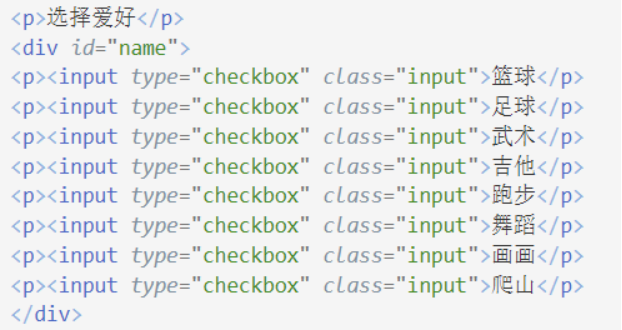 8、for循环反选全选内容:首先设置body标签内容,案例是选择爱好(可以按照你们自己的样式去做)。