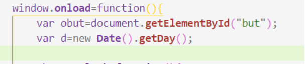 4、设置页面载入时要执行的js代码,先声明变量获取按钮和现在的星期。