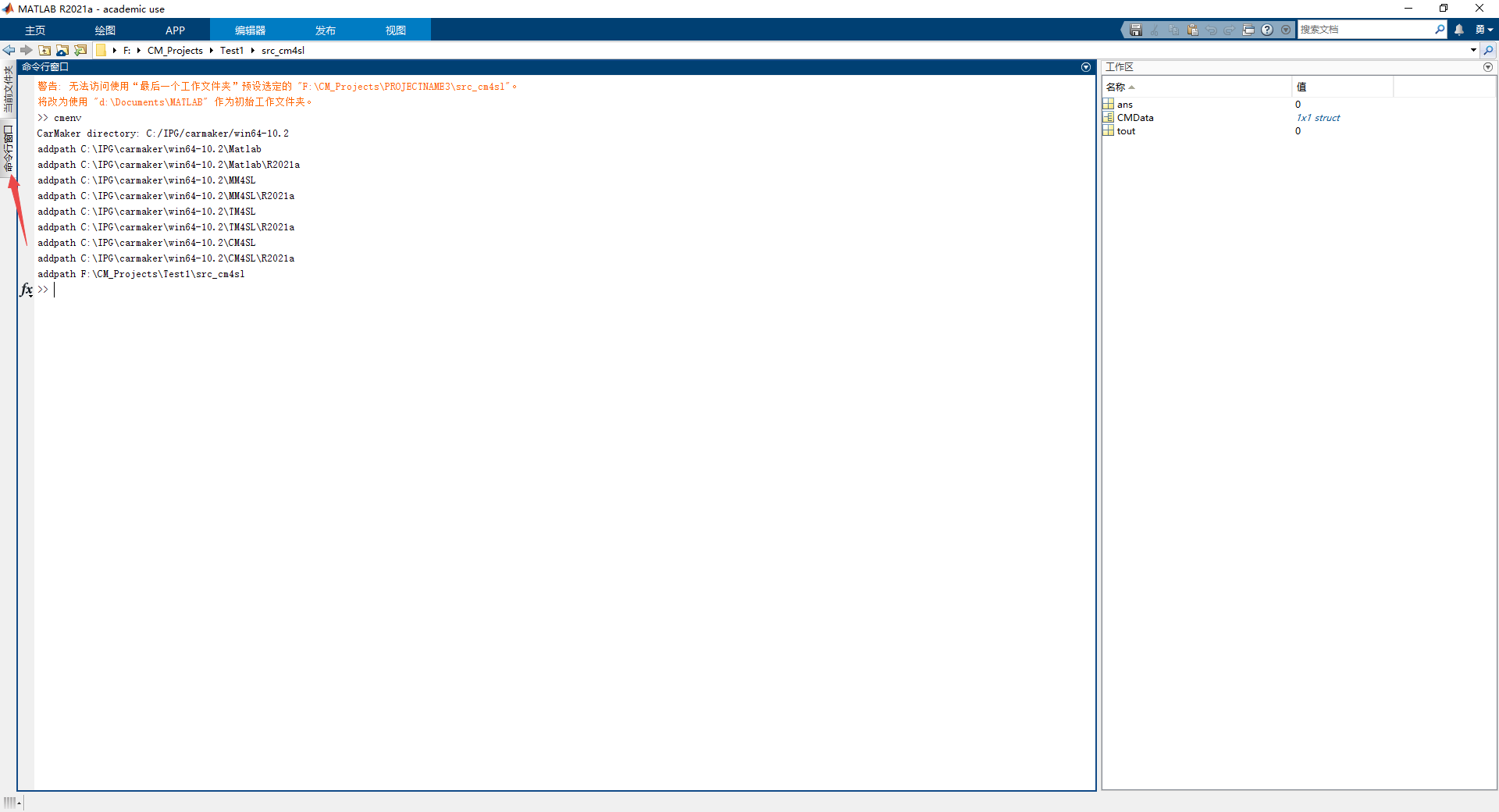 运行cmenv.m,保证了CarMaker和Matlab之间的连接
