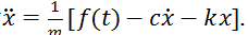 首先通过simulink创立一个简单的模型,这里以一个单位质量单自由度有阻尼的弹簧系统在正弦激励下的仿真框图;其数学模型为