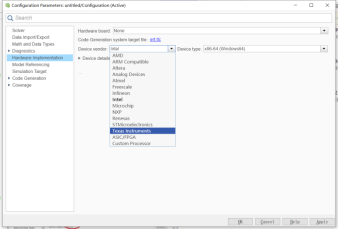 在“Hardware Implementation”中,选择相应的“Device vendor”