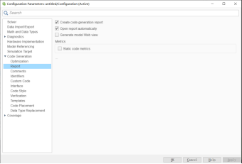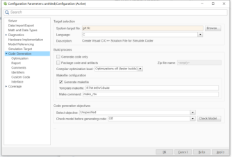在“Code Generation”中,设置如下图所示,主要用于生成C/C++代码(本例中生成C++代码):