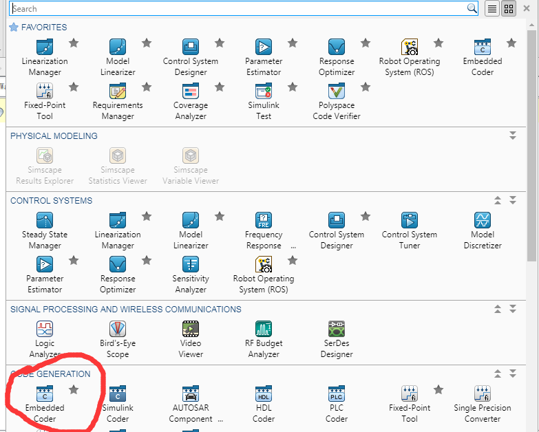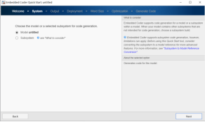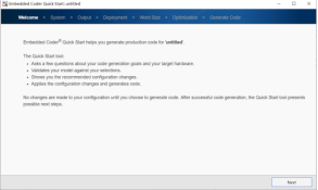 打开simulin界面APPS,下拉界面:选择Embedded Coder,在随后的的界面中选择Quick Start