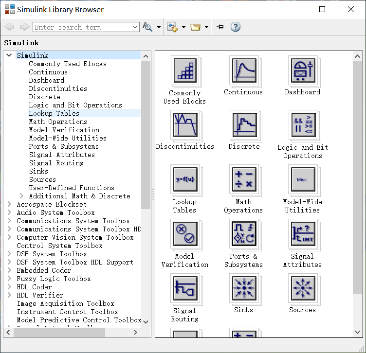 在MATLAB命令窗口输入Simulink,按回车键,启动Simulink模块库浏览器,如图1-6所示。