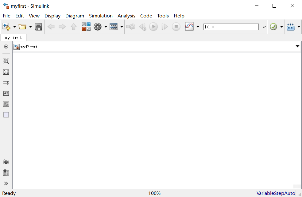单击Simulink模块库浏览器窗口工具栏的NewModel按钮冬,进入Simulink仿真平台界面,如图1-7所示。仿真平台标题栏上的untitled表示一个尚未命名的新模型文件。