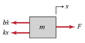质量弹簧阻尼系统如图所示,弹簧弹力与质量块位移x成正比,粘性阻力与质量块速度成正比,弹簧弹力与粘性阻力均与弹簧运动方向相反,x=0是质量块初始位置,此时瘫痪弹力为0,质量块静止。