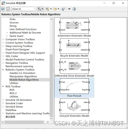 ◼在Simulink库中选择Pure Pursuit纯跟踪模块