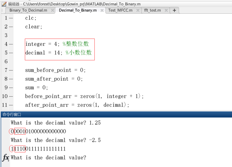 十进制数和有符号二进制定点小数转换MATLAB代码