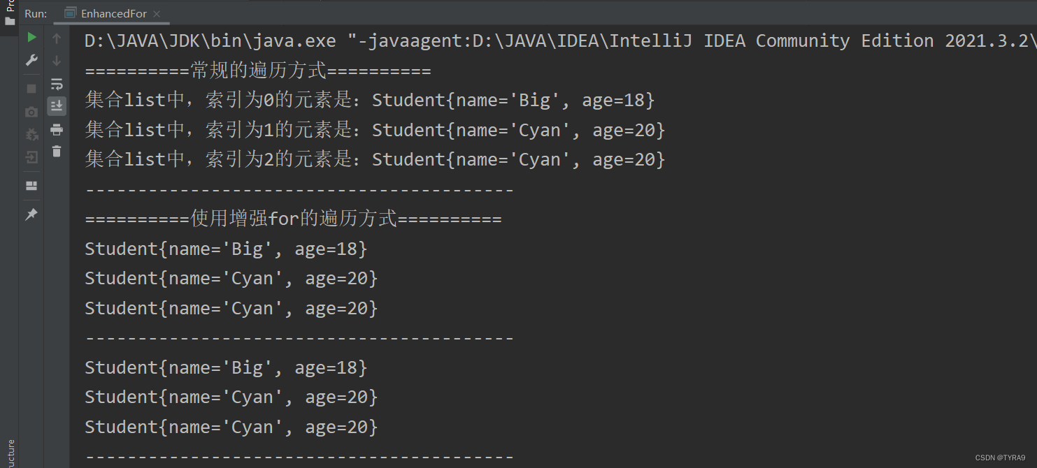 这是因为增强for的底层依赖的是迭代器(iterator),迭代器下文讲到。