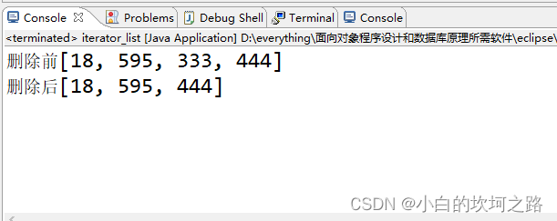 用上面的案例,集合中有18,595,333,444四个值,现在我们将333删除,代码如下。