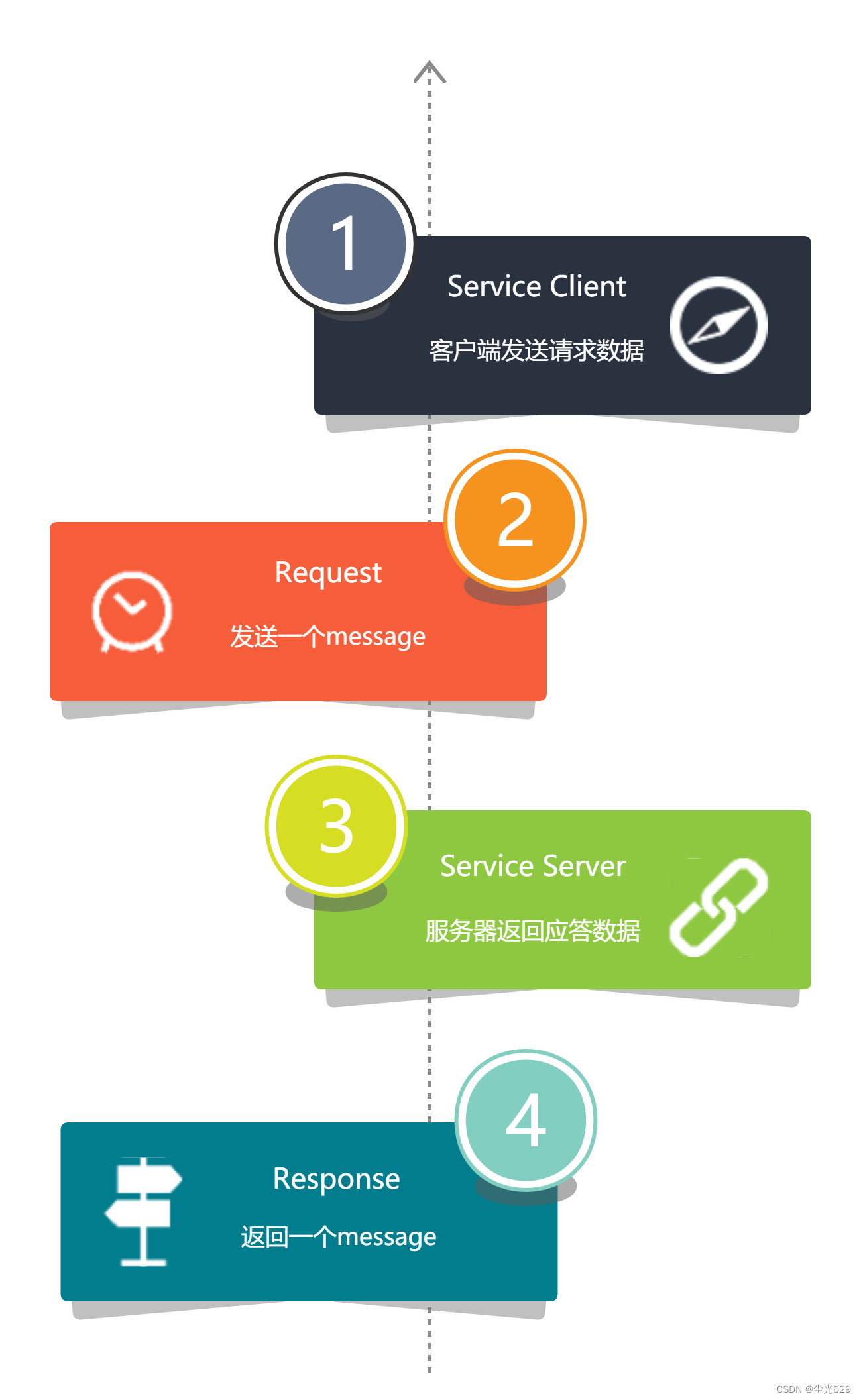 Services(服务):和topics相似,同为数据传输方式,使用Client and Server模型,客户端通过发送请求消息并等待回复来使用该服务。