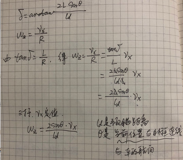 轨迹跟踪方法采用无人车控制理论中比较常用的控制方法,纯跟踪算法。理论推导:本次小海龟路径跟踪算法采用纯跟踪算法(Pure Pursuit),推导过程见无人驾驶车辆控制(三):纯跟踪算法(Pure Pursuit)这里直接写出结论:对于两轮汽车,也就是自行车模型
