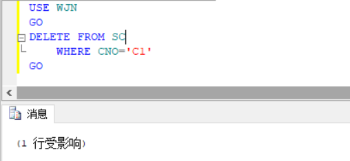 测试数据,对C表删除课程C1如下: