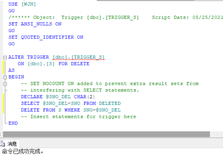 1.交互式修改数据库表S的触发器TRIGGER_S