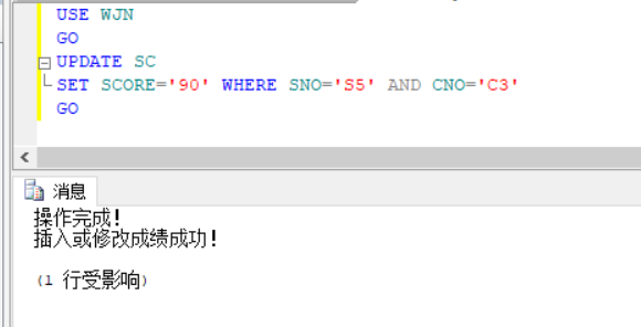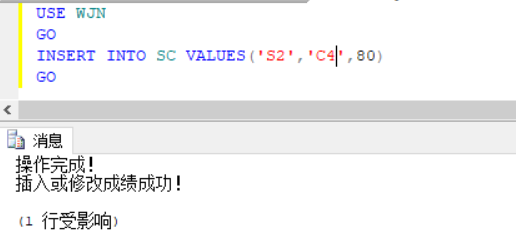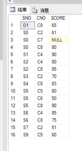 在SC表中插入不合格成绩数据进行测试