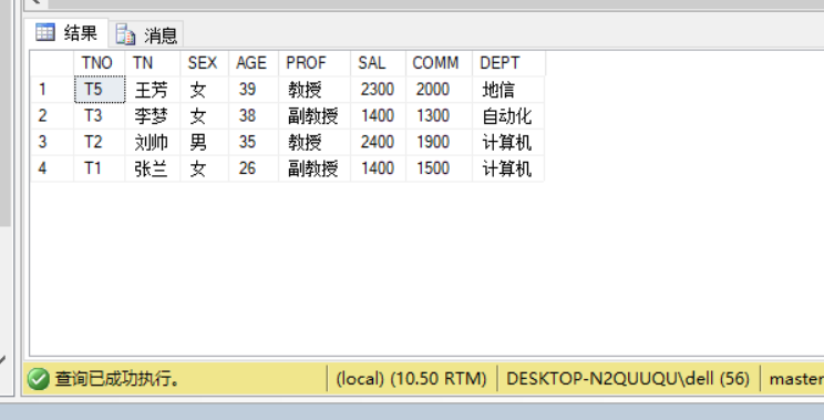 3. 对于调用存储过程时虽然不能使存储过程返回多条数据,但是通过运行调试发现,可以在存储过程中按照常规SQL语句执行,显示出多条数据在结果栏中。