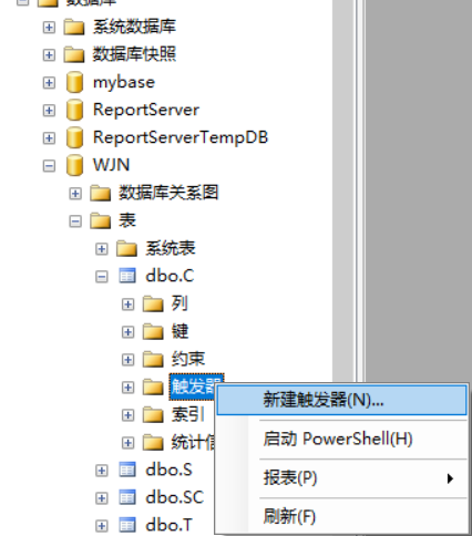 在对象资源管理器中对于表C新建触发器如下: