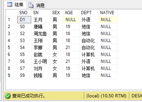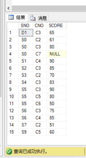 再查看SC表中的数据,发现原本为S1学生的选课数据变成了S5的选课数据,说明触发器的创建成功。