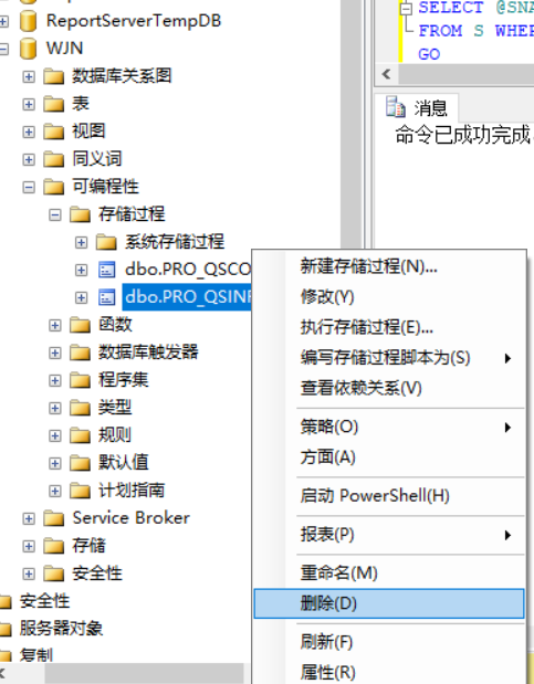 2.T-SQL语句对存储过程进行删除