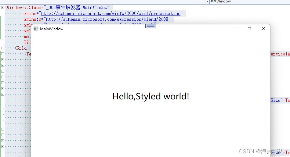 以上就是忧心大白最近收集整理的关于WPF样式:触发器数据触发器和事件触发器属性触发器 数据触发器事件触发器 的全部内容,更多相关WPF样式内容请搜索靠谱客的其他文章。