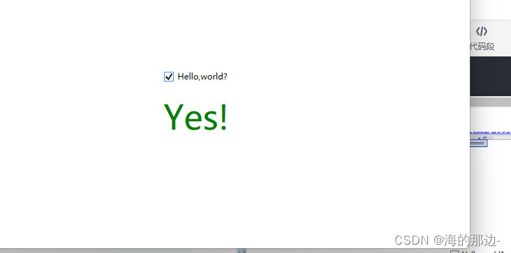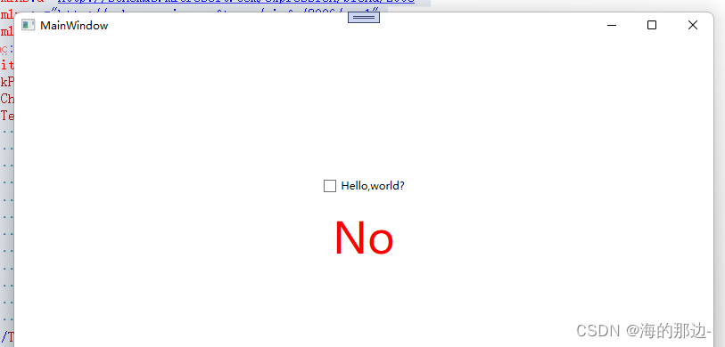 在这个例子中,我们有一个CheckBox和一个TextBlock。 使用DataTrigger,我们将TextBlock绑定到CheckBox的IsChecked属性。 然后我们提供一个默认样式,其文本为“No”,前景色为红色,然后使用DataTrigger,我们提供一个样式,用于CheckBox的IsChecked属性更改为True时,我们将其设置为绿色,并显示"Yes!"的文本。 (如截图所示)。