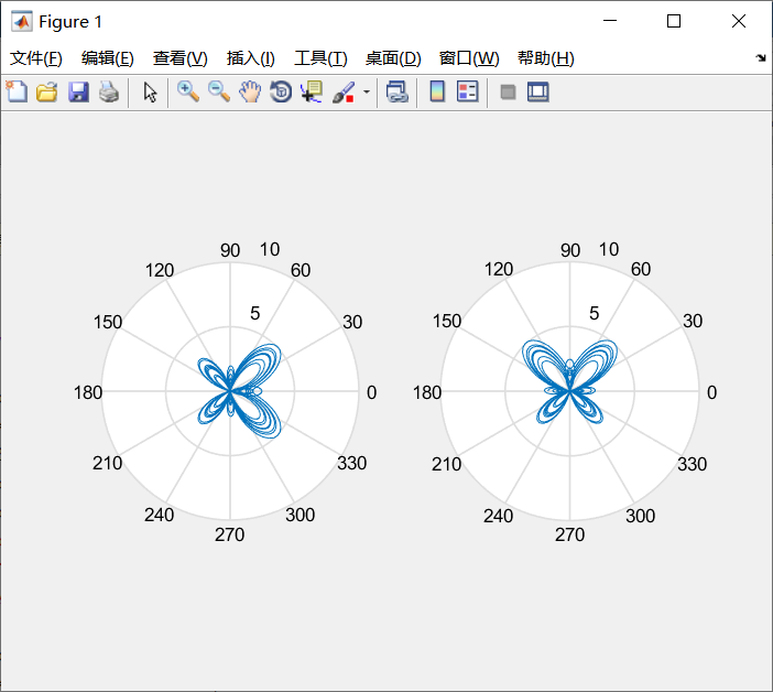polar(t,r1) %绘制蝴蝶曲线