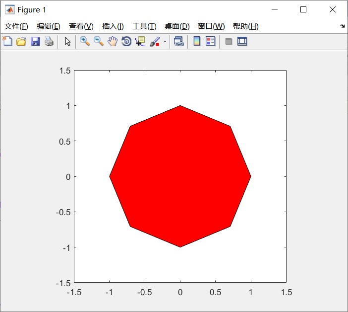 t=0:2*pi/8:2*pi; %取正八边形坐标点 t=[t,t(1)]; %数据向量的首尾重合,使图形封闭。