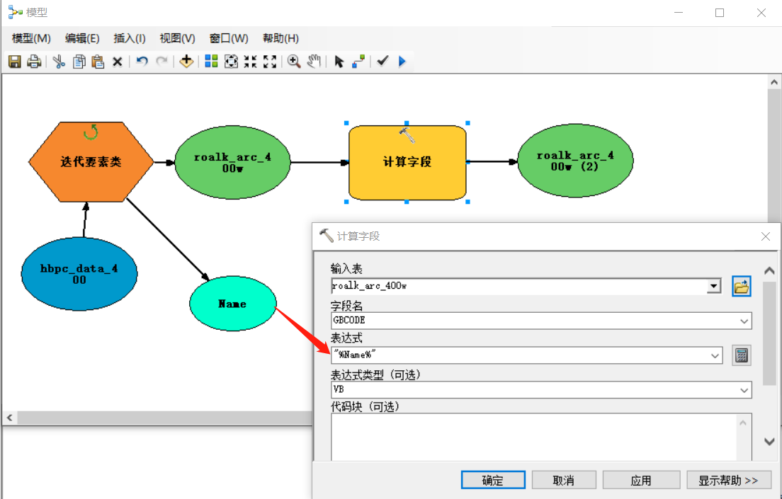 以上就是不安早晨最近收集整理的关于ArcGIS ModelBuilder 迭代器参数传入字段计算器方法最近一直困惑:利用arcgis Modelbuild如何将很多的个人数据库或文件数据库的名称(多个图层名称)写入属性项。经过与技术支持沟通,得出通过迭代器迭代的方式获取到文件名或图层名称,再通过字段计算器进行计算;特别需要注意的是迭代器获取的名称是字符串,字段计算器中的表达式位置需要字符串,这是就需要采用字符串+行内变量的方式实现,例如 "%Name%"的全部内容,更多相关ArcGIS内容请搜索靠谱客的其他文章。