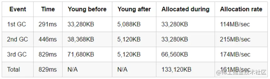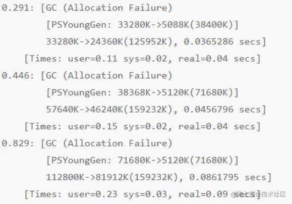 JVM启动之后 291 ms, 共创建了 33,280 KB 的对象。第一次Minor GC(小型GC) 完成后, 年轻代中还有 5,088 KB 的对象存活。 -
