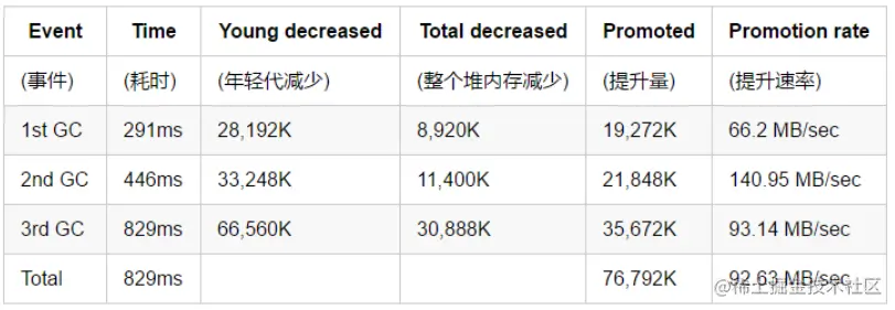 提升速率(promotion rate)用于衡量单位时间内从年轻代提升到老年代的数据量。