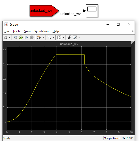 进行下列实验:将Unlocked子系统中的unlocked_wv在模型最外层系统进行输出显示可得下图。
