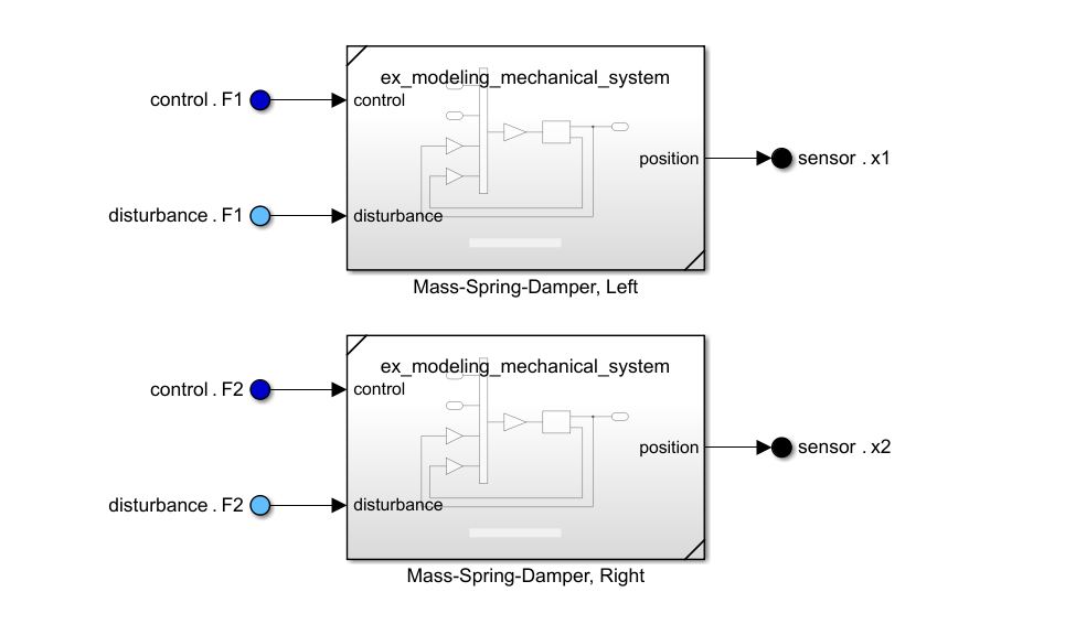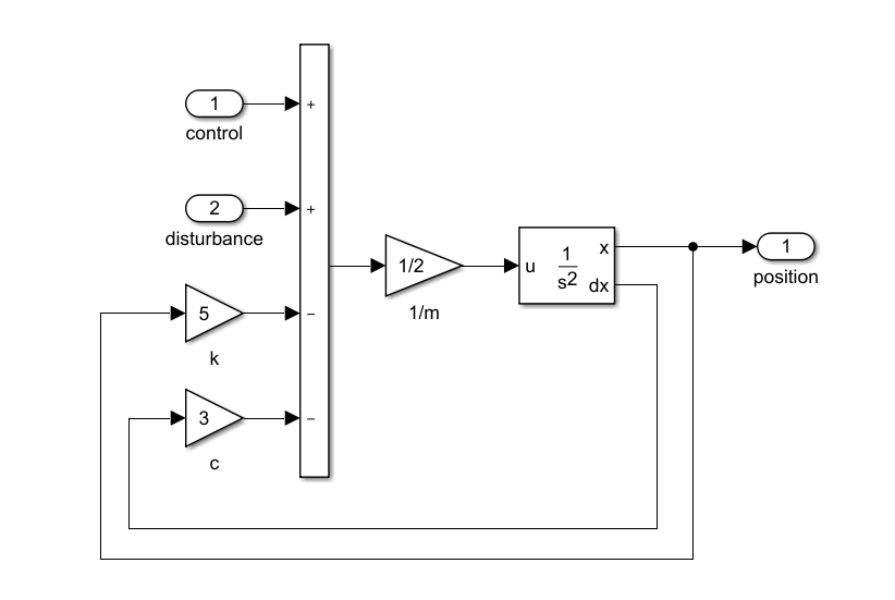 当然如果模型不太复杂的时候,盲目地去使用基于组件建模是没有什么优势的,就像前面那节我第一次对弹簧阻尼器建模强行去使用比较复杂的总线管理以及输入变量分配的那样。会把简单问题复杂化,花费比较多的时间。这一次,基于Simulink Help中Reuse Model Components from Files这个Demo,来学习一下这些步骤里面很重要的一环,复用模块。