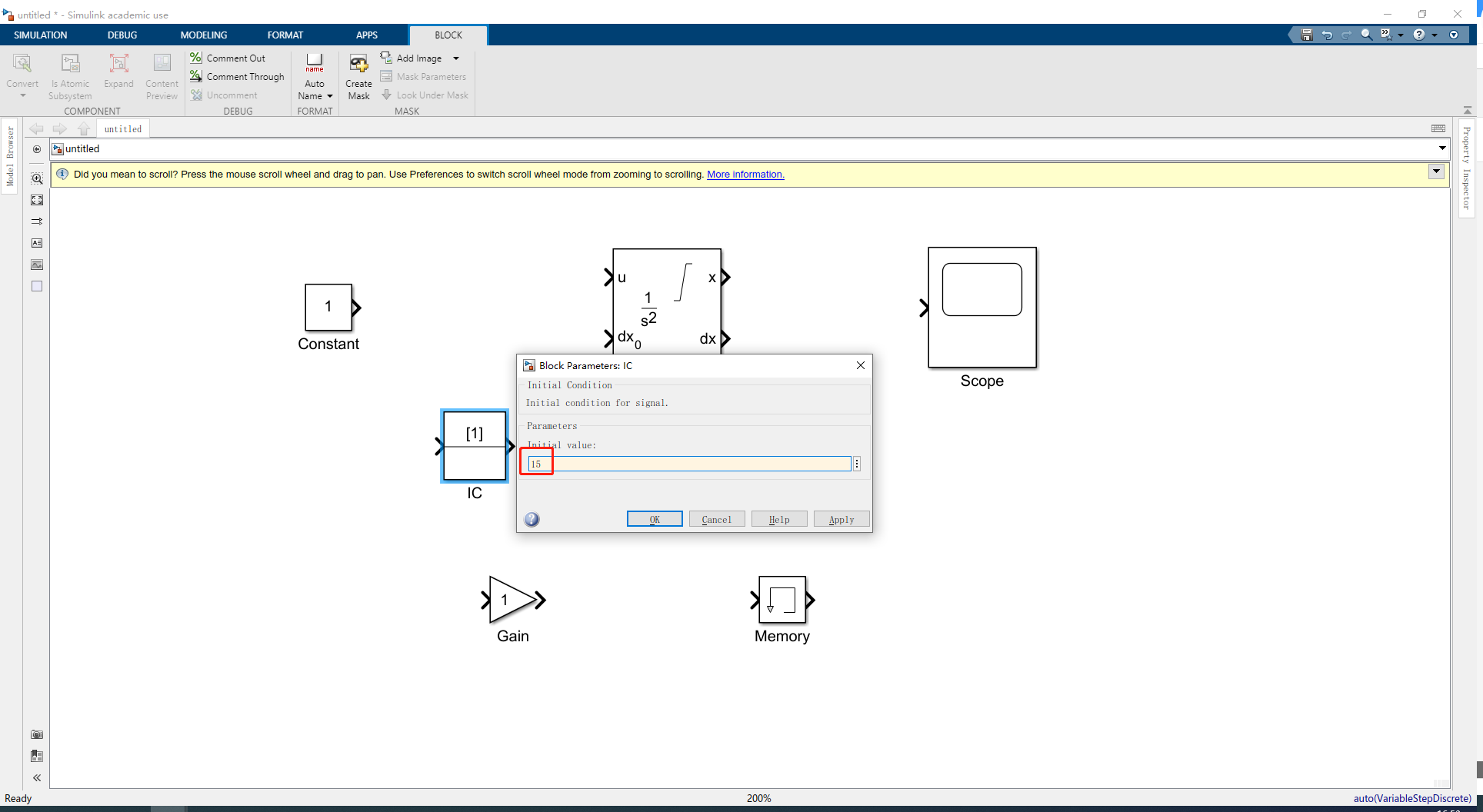 - 至此,Simulink基本的建模功能已经掌握,下一次打算尝试视频里的另一篇样例:Simulink帮助文档>Simulation>View and Analyze Simulation Results>Frequently Viewed Topics>Log Signals to the Simulation Data Inspector,我在我的帮助文档里找到的是“容错燃油控制系统建模”,看起来不是不是很有挑战呢。