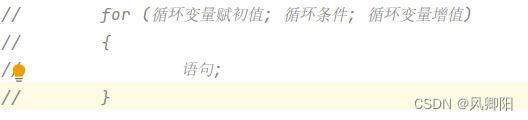 - 求解表达式2。若其值为真,则执行 for 语句中指定的内嵌语句,然后执行第3步;若表达式2值为假,则结束循环,转到第5步。