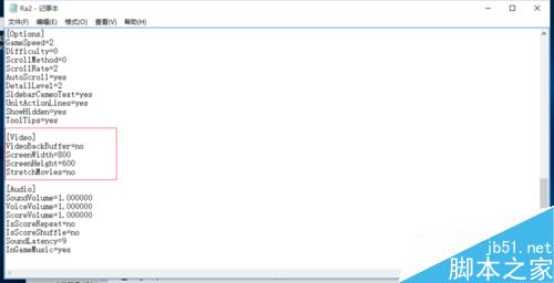 用右键选择 编辑 打开 找到[Video]在下面加一行VideoBackBuffer=no 也就是改成 [Video] VideoBackBuffer=no ScreenWidth=1024 //(或为800)ScreenHeight=768 //(或为600)StretchMovies=no 然后保存