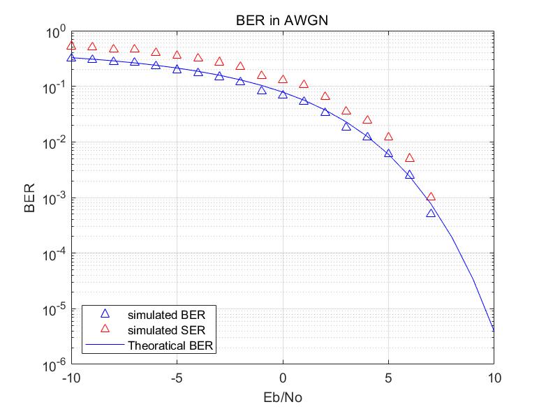 legend('simulated BER','simulated SER', 'Theoratical BER','location', 'SouthWest');