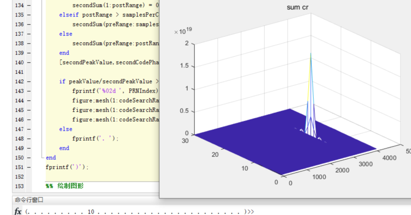 频率搜索:就是通过本地产生的本地载波的频率控制字来进行频率搜索,以中心频频率为中心搜索范围,每次步进一定的频率进行搜索。当捕获的相关结果中最大值为第二大值的2.5倍就判定出现相关峰。