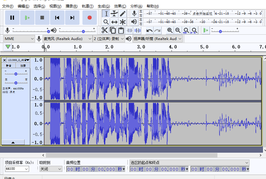 Audacity软件界面如下图所示: