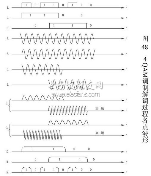 QAM调制实际上是幅度调制和相位调制的组合。相位 + 幅度状态定义了一个数字或数字的组合。QAM的优点是具有更大的符号率,从而可获得更高的系统效率。通常由符号率确定占用带宽