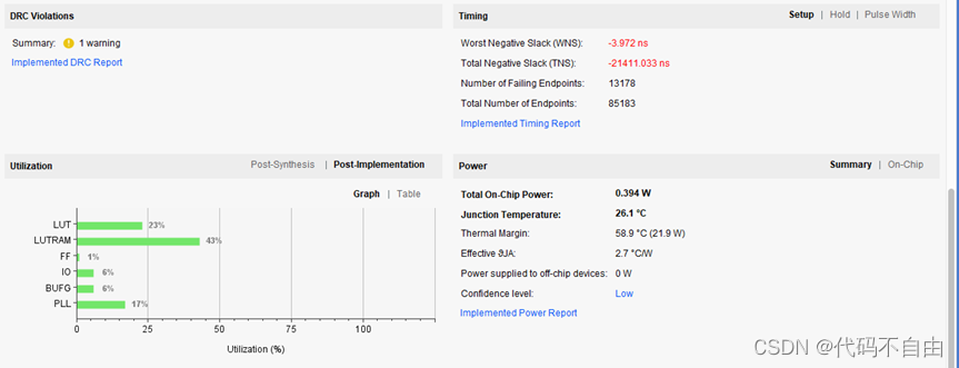 | 资源使用、功耗数据截图(Post Implementation;含单周期、流水线2个截图) |