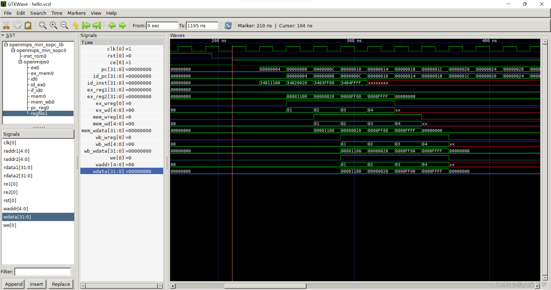 有了这两步,就可以用iverilog和gtkwave开始测试了,