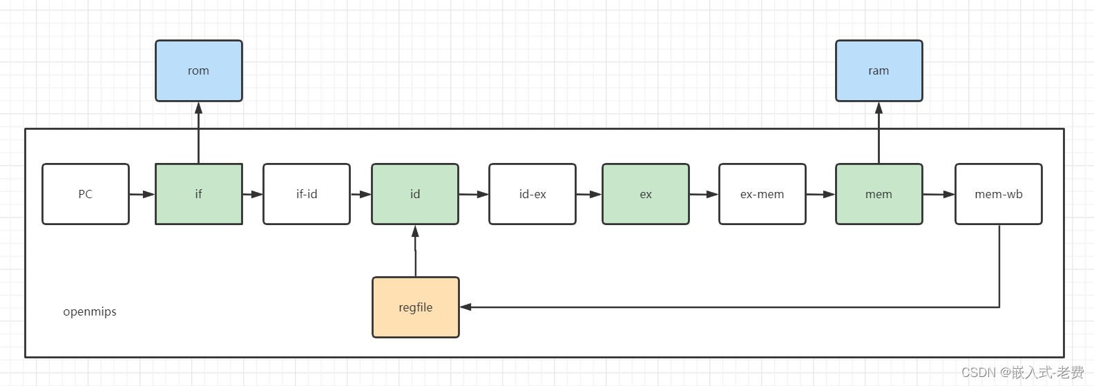 前面分析过,一条指令的过程是按照取指、译码、执行、访存、写回这5个步骤来完成的。那么今天,就可以用一条5级流水线来实现ori指令。