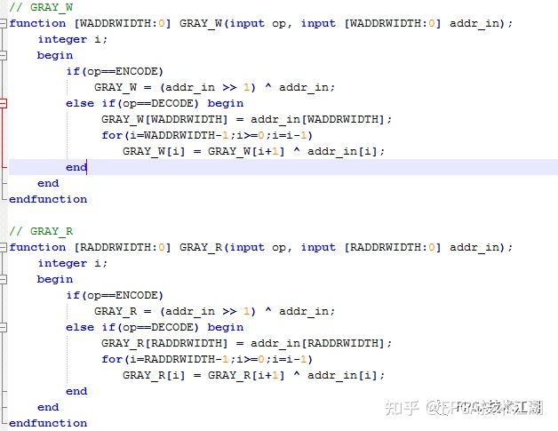 对于格雷码与十进制互换的代码,仅提供给大家作参考:代码使用的是函数的形式,方便调用,op表示编码或者译码,WADDRWIDTH和RADDRWIDTH表示位宽。