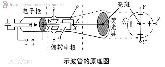 将扫描信号加到水平偏转板上,将被测信号加在垂直偏转板上,最终扫描信号相当于提供了水平参考的时间轴,Y轴则是反映被测信号的变化规律。而在荧光屏上看到被测信号的波形,当被测信号的频率是扫描信号的整数n倍时,是因为荧光屏的余晖效应和人的视觉暂留效应,能够看到n个完整波形。