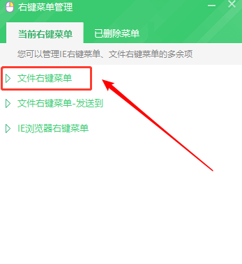4、点击“文件右键菜单”,因为右键卡顿、一直在转圈的问题都基本出现在这里。